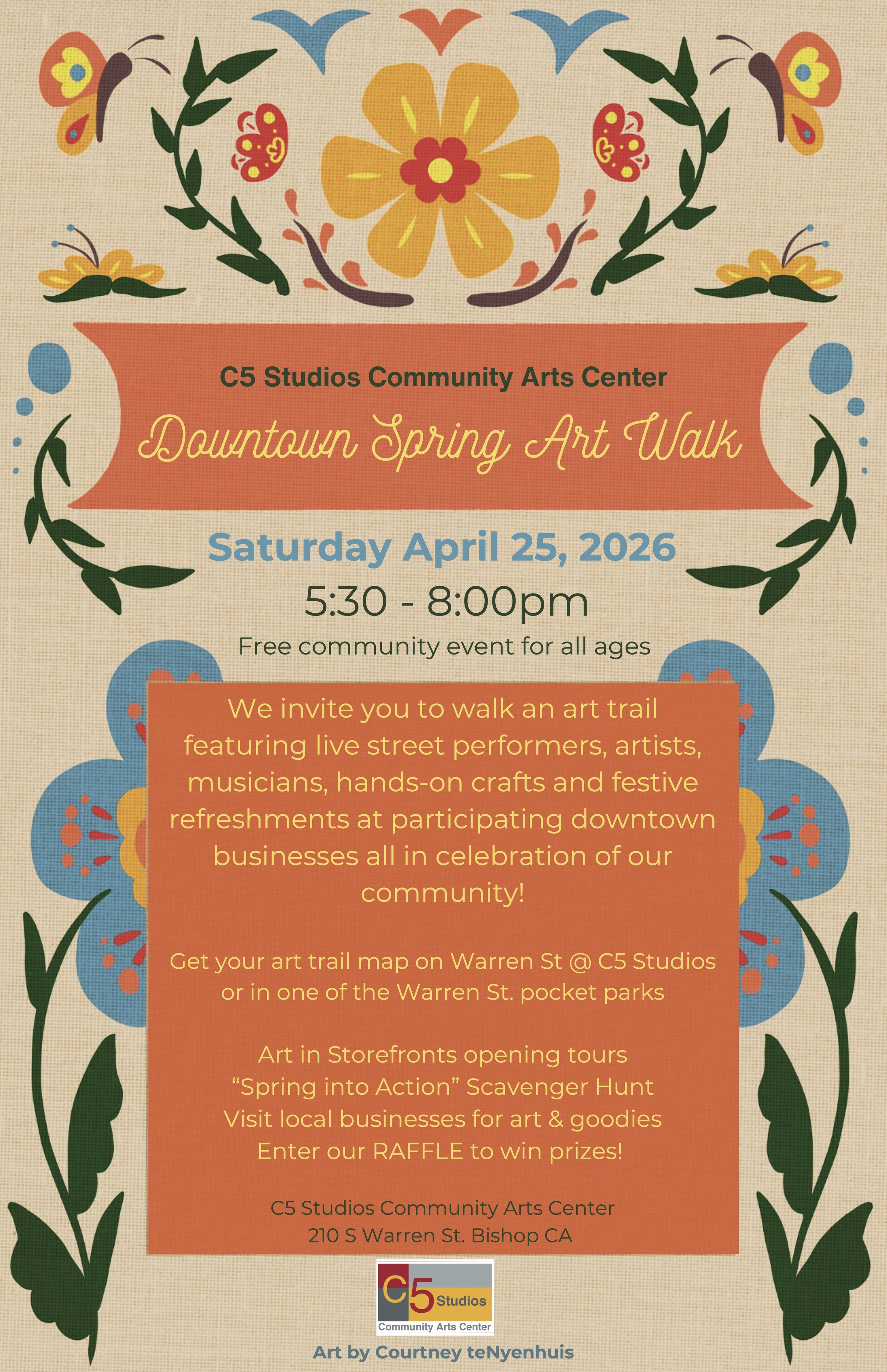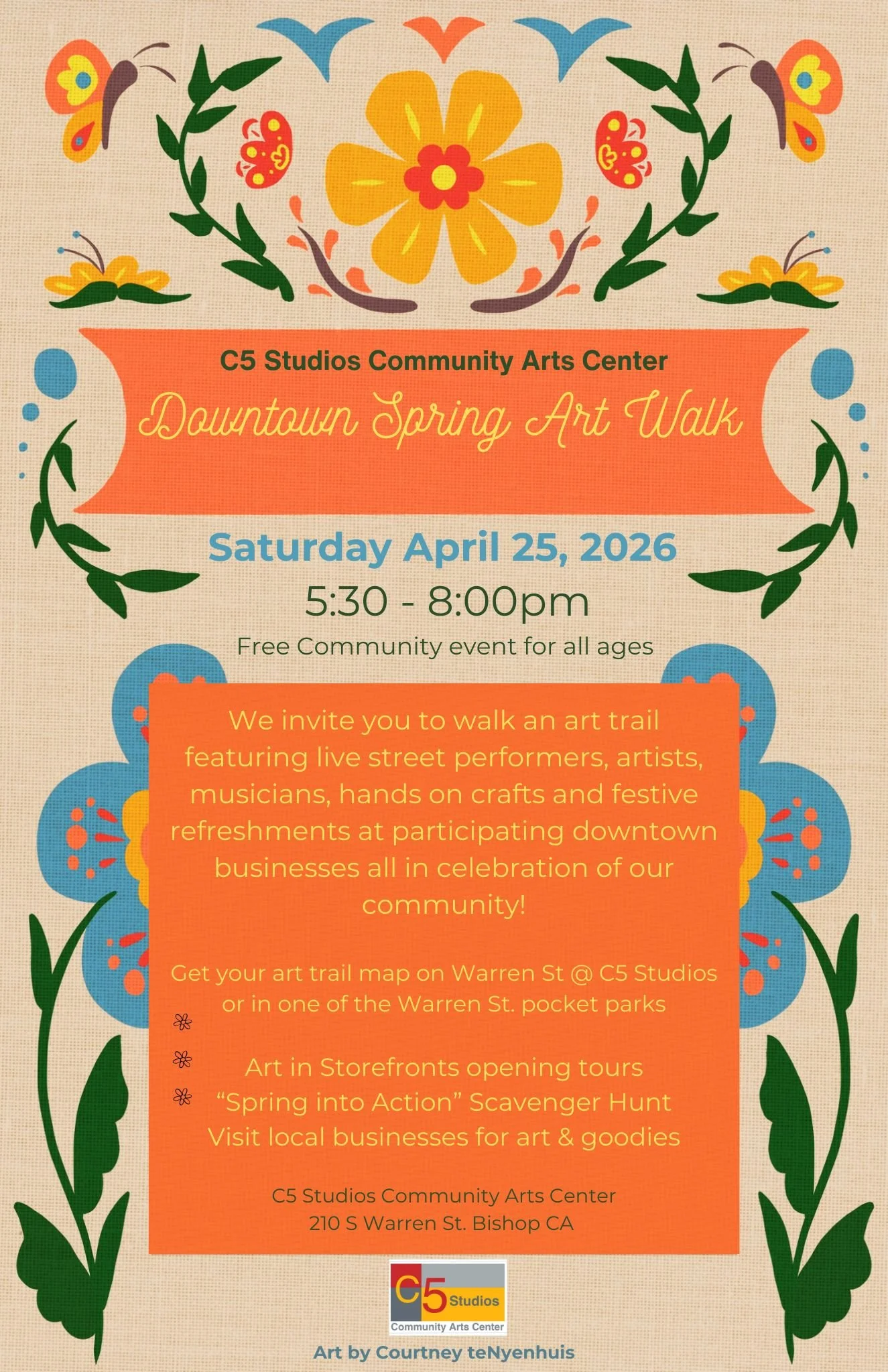 C5 Studios Community Arts Center is a creative hub in Bishop, California that aims to be an inspirational home for creative practice and culture, bringing a vibrant, contemporary arts experience to the region.